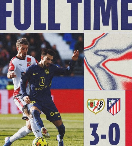 吉祥体育 – 西甲联赛巴列卡诺3-0马德里竞技;马德里竞技队跌至第四位